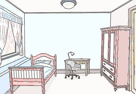 Consider the person's ability to "hide" in the house. Many autistic people like to be able to hide away somewhere quiet when overwhelmed. A home with well-defined spaces or a few "hidey holes" may be more attractive to an autistic person. Open-concept houses are usually a bad idea for autistic people. These can be noisy and make the person feel too exposed. Let them have their own room, if possible. Consider if there's a special place the person could hide when they want to be alone, like in their closet or under the stairs. Having a hiding place can reduce the risk of running off, because the person already has a safe place to go.