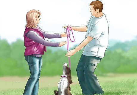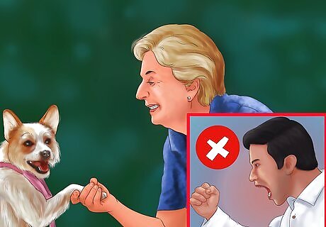 Introduce positive people. Being introduced to new people can often be a struggle for dogs coming from emotionally abusive situations. Help counteract this by introducing positive people who can offer affection and praise to your dog. Don't have people give your dog treats or affection when it's acting stressed and anxious, or they'll actually be rewarding that behavior. Instead, have them ignore your dog until it's acting calm. Try to make a point of introducing your dog to people it will see regularly first. Having your dog bond with someone who will not be around long could cause greater stress for your pet.