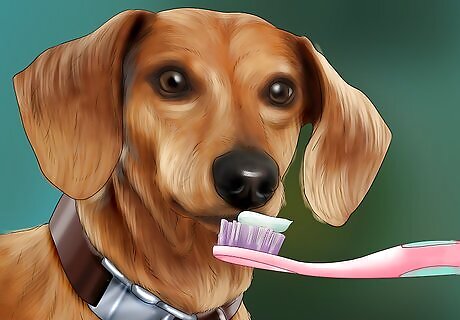 Create good endings to bad experiences. A traumatized dog may learn to trust a bit more when experiences that cause panic end on a good note. Try to create a positive outcome for experiences to which your dog is acting negatively to help them build trust in you and the situation. For example, if your dog is afraid of having their teeth brushed, try to end each brushing session with gentle petting along the jawline and praise for your dog’s positive behavior. This can help them grow increasingly more comfortable with future brushing sessions. When possible, try to give your dog the option to leave if they become too uncomfortable with any situation. Forcing the dog to stay may only make their anxieties worse. However, you should wait until your dog is calm before you let it go — if you release it when it's acting stressed and anxious, you'll actually be rewarding this kind of behavior.