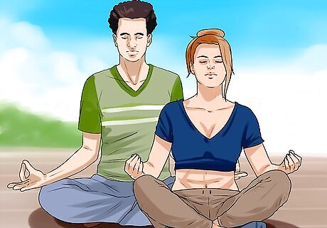 Practice relaxation together. Relaxation is a great way to bust stress and manage daily stressors. While stress can overwhelm the body and the mind, relaxation can help bring balance back to life. Invite your loved one to accompany you jogging, dancing, in meditation, or to yoga. You can also practice deep breathing together by closing your eyes, taking deep breaths, and feeling your body and mind relax more and more. Practice daily relaxation for 20-30 minutes a day. Even if you cannot meet with your loved one each day, practice relaxation over the phone.
