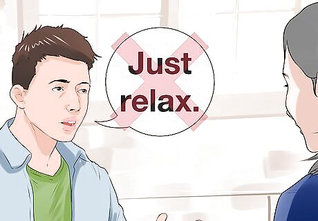 Avoid saying “just relax.” It’s difficult to understand someone with social anxiety disorder, and to the outsider, the disorder may seem ridiculous. However, to the person suffering from social anxiety disorder, the fears are very real and greatly impact normal life. While you may motivate yourself against fears in a certain way (by telling yourself to relax or “just do it”), it doesn’t mean that this will be helpful or well received by your loved one. Your loved one’s social anxiety disorder may influence your life or frustrate you. Keep in mind that your loved one is struggling and needs your compassion, not your judgment.