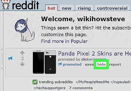 Click Hide. It’s a gray text link beneath the post’s name (between “save” and “report”). The post is now hidden from Reddit. If you sign out of Reddit, the post will no longer be hidden.