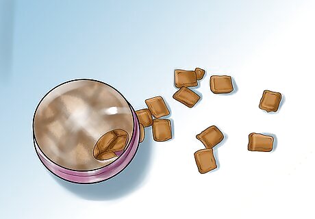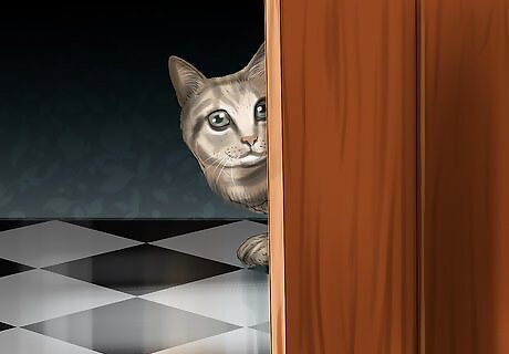 Place treats in baskets or open drawers. Cats tend to like to hide in baskets, such as laundry baskets or wicker bathroom baskets. They also like to curl up in open drawers. Hide treats in these spots for your cat to discover. Sometimes cats will hide in kitchen cupboards or bathroom cupboards. Try hiding treats in these spots for your cat to find.