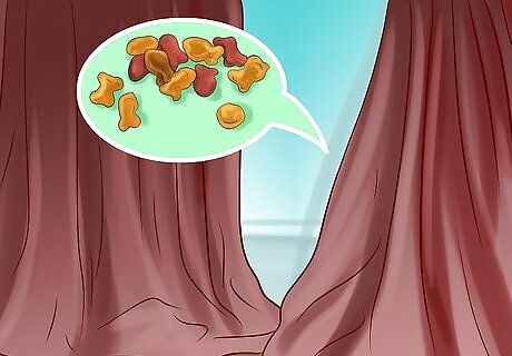 Put treats behind drapes or curtains. Cats also tend to like hiding behind drapes or curtains, especially if the drapes reach all the way to the floor. Try putting treats in these spots for your cat to find. Some cats also like to curl up under a bedspread or a blanket. You can try hiding treats under your cat’s favorite blanket or bedspread for them to find.