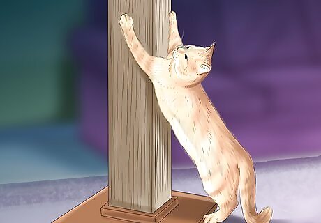 Hide treats by your cat’s scratching post or bed. One of your cat’s favorite spots in your home is likely its scratching post, if it has one, and its bed. Try hiding treats by its scratching post, such as on the top step or shelf of the post. Or you can place treats by its bed for it to find. If your cat has more than one scratching post or climbing post in your home, hide treats on each post for them to find.