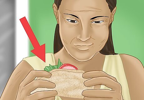 Look at how the person is chewing and handling food in their mouth. If any of these are true, the person might have "oral dysphagia", or dysphagia affecting the mouth. Is the person taking a long time to chew? Is the person chewing ineffectively or swallowing food that's only partially chewed up? Is there food being held ("pocketed") in the person's cheek on one or both sides? Is the person impulsively putting too much food in their mouth? Is there residual food stuck to the person's tongue, teeth, or in the back of their throat after they swallowed? Remember that the person may or may not be able to feel it. Try to have the person open their mouth after they swallowed and take a peek inside. Is the person losing any food or liquid out the front of their mouth, because their lips aren't closed all the way? Does the person avoid food or seem like they have an aversion to food?