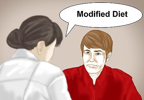 Get help if needed. If any of the above are true, talk to a doctor about getting a swallowing evaluation from a Speech-Language Pathologist (SLP). This is the professional who evaluates and treats swallowing disorders. Most SLPs work with children in schools, but many others specialize in treating adults with swallowing disorders. If you think that you or a loved one has difficulty swallowing, talk to your doctor and ask for a referral to an SLP who specializes in swallowing. The SLP might recommend a modified diet, which could include changing the texture of either the solid foods, the liquids, or both. Changes to the solid textures usually means avoiding certain hard or crunchy items (like nuts and popcorn), and might mean making all of the food softer. There are various levels of softness, ranging from just cutting the food up into bite-sized chunks, to foods that are completely pureed in the blender. The SLP will describe which texture is recommended for you and give you examples. If you are having difficulty with liquids, the SLP might recommend thickening your liquids. There are several textures of liquids: Thin (normal water and most normal liquids), Nectar thick liquids, Honey thick liquids, and Pudding thick liquids. You can buy commercial thickeners at most drugstores that can be added to liquids to make them thicker. The SLP will let you know if you need thickened liquids and which texture is right for you.