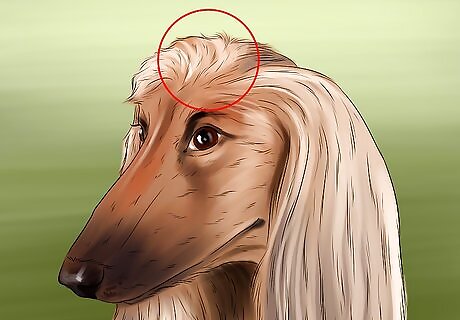 Look for long, silky fur. The most characteristic quality of an Afghan Hound is its long, silky coat, which drapes down its body. It also has a top-knot: a growth of long hair that flows down from its head. The dog can be any color and still meet breed standards. The fur is often described as having a texture similar to that of human hair. The Afghan's hair is short from the ribs up to the back. Thus, the fur will be much closer to the dog's body along its back than other areas.