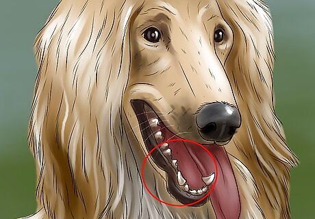 Look for a level mouth. One feature of Afghan Hounds that is rare among other breeds, is the way the teeth of their upper and lower jaw match evenly, instead of meeting in either an underbite or an overbite. Though, some Afghans have a scissors bite, in which the lower teeth rest against the back of the top teeth.