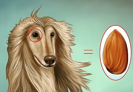 Look for almond eyes. The eyes of an Afghan Hound should never be big. Instead they should be almond-shaped: thin with clearly defined points on both ends. The eyes should be a dark color.