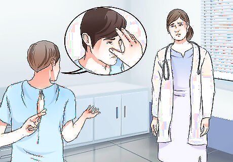Address anxiety. Some symptoms of anxiety can manifest physically, such as shallow breathing/shortness of breath, stomach upset, dizziness, muscle tension, headaches, sweating, tremors or twitches, and frequent urination. While these symptoms are a manifestation of anxiety, they can be confused with having a medical origin. People with anxiety may jump to negative conclusions and catastrophize situations. What may be a small medical problem (or no problem at all) may be perceived as a medical emergency. A perceived medical emergency may cause extreme tension, worry, and distress in the person. They may feel frustrated that medical practitioners are not taking the symptoms seriously and request further testing or go to another medical doctor. In people with anxiety, these symptoms cause distress and discomfort. They want the symptoms to go away and not persist, unlike those with factitious disorder. For more information on anxiety, check out How to Recognize Anxiety in Yourself, How to Stop Anxiety, and How to Cope With Panic Attacks.