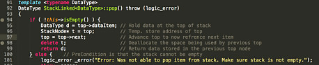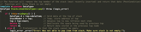 Implement StackNode in the StackLinked Class. Since this stack implementation utilizes a Linked List, which is just a chain of connected boxes (nodes) containing data, you will need to include the StackNode class. To do this, again, simply copy paste the code from below to your StackLinked.h file. This will allow the implementation to make the boxes and connect them together. It is crucial that you do this step carefully, for if this is not done correctly then nothing else will work. Furthermore, if done incorrectly, this may result in memory leak; which will not be good for you computer. You can think of this as the basic building block for your stack. // Node Class (Each item in stack is one node, insert this in the same file as above) class StackNode { public: StackNode(const DataType& nodeData, StackNode* nextPtr) { dataItem = nodeData; next = nextPtr; } DataType dataItem; // Data stored in node StackNode* next; // Pointer holding the address of the next node };