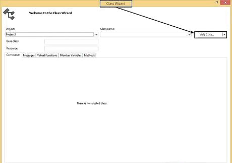 Add a class to your project. In Visual Studio, the easiest way to add class is to simply use the keyboard shortcut Ctrl+⇧ Shift+X. Once the window title Class Wizard opens, click the Add Class button towards the top right.