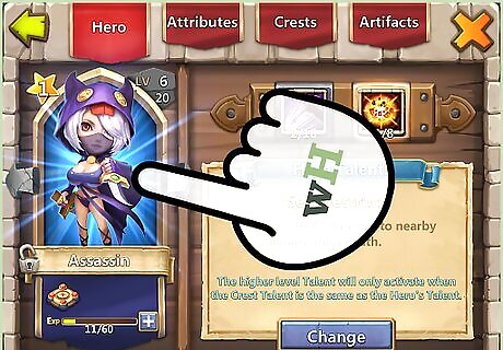 Collect runes. Buy runes with fame, in which you can earn from the Lost Battlefield. Defeat players in the Lost Battlefield and use runes to level your hero's talent up to 8/8 instead of 5/5. Gain the correct type and amount of runes in order to level each hero's talent to the max. From then on, you will be able to possibly evolve your hero.