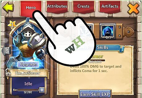 Gather enough shards. Shards are used to buy essences. Essences can be useful in feeding to your heroes, allowing their skill levels to get higher. Perform HBM (Here Be Monsters) and HBD (Here Be Demons) waves and stages to gain shards. Battle in dungeon stages to occasionally get shards every few battles. Try out Storm Mesa rounds with buddies, random players, or guild mates. Sometimes, shard packs could be rewarded, usually in Storm Mesa 1 and Storm Mesa 4 rounds. Use shards to buy essence in the hero's altar.