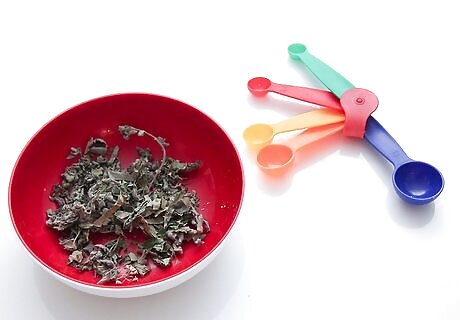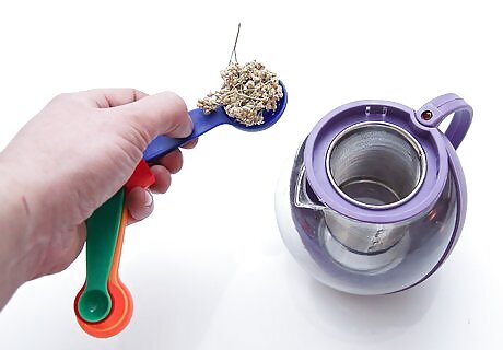 Measure your herbs. The most basic proportions are one tablespoon dried or two tablespoons fresh herbs per cup of water. However, the guidelines may vary according to the herb and your taste. Be sure to take the recommended dosages into account when deciding how much of each herb to use in your infusion. Going by weight, the amount can vary from a half gram to five grams per eight ounces of water. You can also vary the amount according to taste, which may require some experimenting. For instance, if you have a very strong or pungent herb like cayenne pepper or cloves, you will want to use a much smaller amount than you would for other herbs.