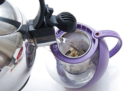 Add boiling water to the herbs in a pot or jar. Be sure to measure the water by ounces or cups to get the appropriate amount and proportion for your infusion. You can use a glass jar, ceramic teapot, or french press. The only requirements are that it is heat-resistant and has a tightly fitting lid.