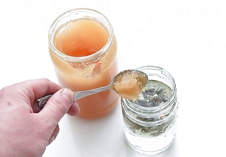Sterilize a glass jar with a tight-fitting lid. Wash it in hot, soapy water. After rinsing the jar, place it wet on a baking tray and dry it for 15 minutes in an oven preheated to 350 degrees F (175 C). You’ll need two jars for this process, one for letting the honey steep and one for storing it in.