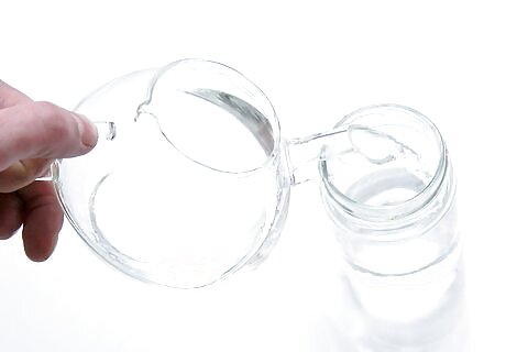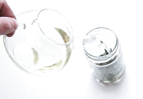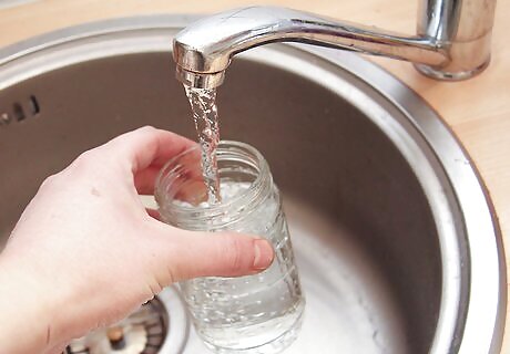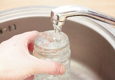 Add cold water to a sealable jar. Measure the correct amount of water for your recipe. Pour the liquid into an appropriately sized glass container with a tightly fitting lid, such as a Mason jar.