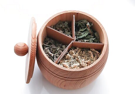 Store your herbs. Dried herbs should be kept in airtight containers (like a glass jar with a screw-top lid) in a cool, dry place out of direct sunlight. Be sure to clearly label each container with the common and botanical name of the herb as well as the date of purchase or harvest. Storing them correctly will help preserve the potency of your herbs for longer. Well-stored herbs will never “go bad,” but they will greatly diminish in nutrition and flavor, so it’s best not keep them for longer than a year.