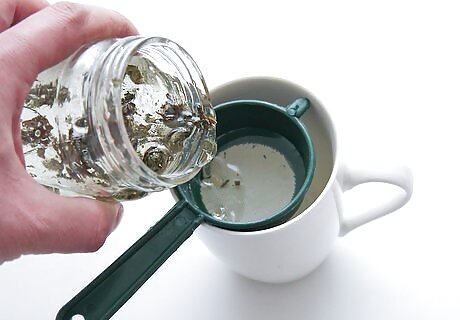 Create a tea bag. Tie the herbs up in a piece of muslin or cheesecloth using a piece of string. You want the herbs to fit loosely in the bag so that water can circulate freely through them.