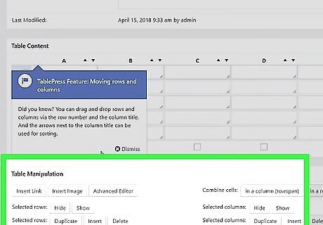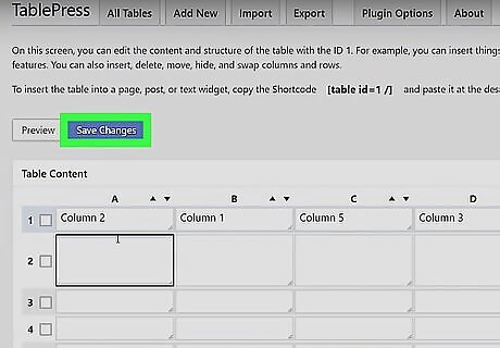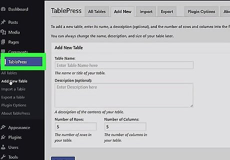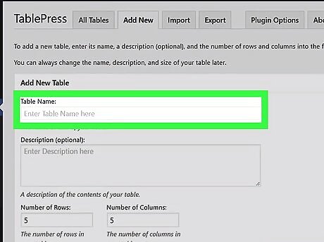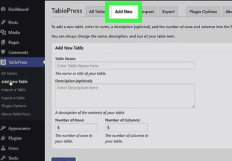 Click the Add New tab at the top. You can find this button next to the TablePress heading at the top of the page. This will allow you to setup and create your new table.