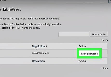 Find and copy your new table's shortcode. You can find the table shortcode next to the Table Information heading in the upper-right corner of the page. Select the shortcode with your mouse. Right-click on the selected text. Click Copy.