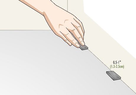 Use spacers to keep a 0.5–1 in (1.3–2.5 cm) gap around the walls. Before adding your first layer of glue, stick spacers in between the subfloor and the wall. The thickness of these spacers should be identical to the thickness of your boards. In most cases, this will be 0.5–1 in (1.3–2.5 cm). Put 1 spacer every 6–8 inches (15–20 cm) to ensure that there’s an even gap between the wall and the bamboo boards. As time passes and the bamboo absorbs moisture, the floorboards will expand. The spacers will leave an expansion gap around the wall and ensure that your boards don’t buckle or break when they expand.
