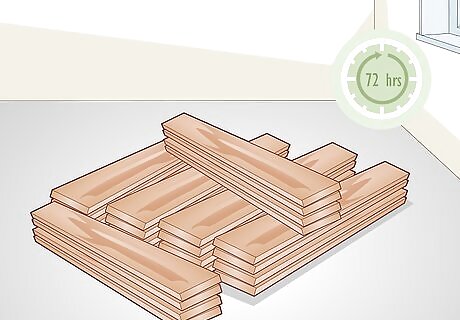 Acclimate the bamboo by leaving it inside your home for 72 hours. The bamboo flooring will expand, shrink, and bend slightly as it acclimates to the humidity and temperature in your home. To avoid this, unpack your floorboards once they arrive. Layer them on top of one another in a sequence of parallel stacks like you’re building a log cabin. Keep the temperature in your home at 60–80 °F (16–27 °C) for the 3 days you’re acclimating the bamboo. Do this in the room where you’re going to install them and leave them out for 72 hours to let them acclimate to your room. This step is more important than it probably sounds. Your bamboo boards will not sit flat if you install them without acclimating them first.