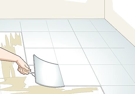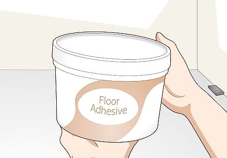 Clean the subfloor thoroughly with a vacuum and damp cloth. Discard your old flooring, nails, or screws. Scrape away any old adhesive with a floor sander or a putty knife. Then, sweep and vacuum your flooring thoroughly. Wipe any dust or glue residue with a damp cloth and let your flooring air dry for 12-24 hours.Tip: If your subfloor is made of concrete, pour a little water on it after cleaning the subfloor. If the water soaks into the concrete, you have nothing to worry about. If the water beads up though, you have a sealant on the concrete and the glue won’t bond with it. Rent a floor sander and run it over your flooring to wear away this sealant. If there is any dirt or residue on your floor when you install the floorboards, the flooring glue may not grip the subfloor correctly and your bamboo may come loose over time.