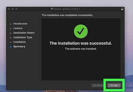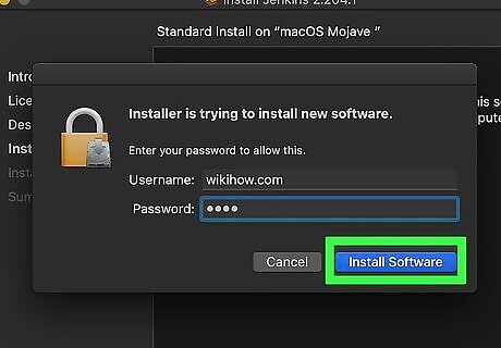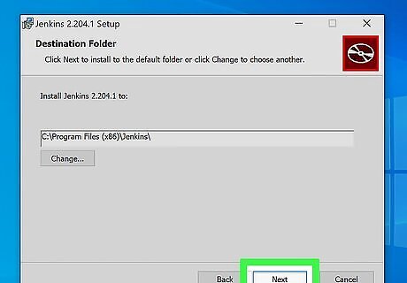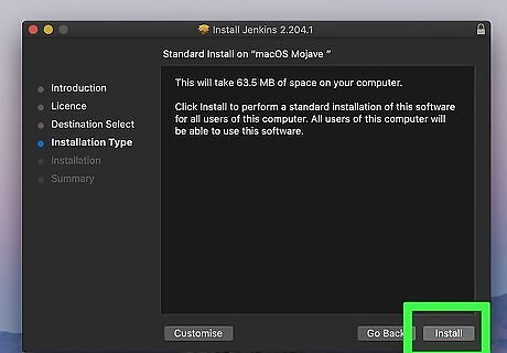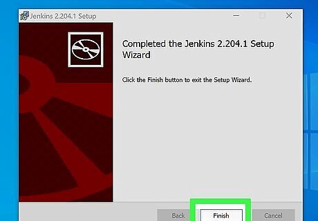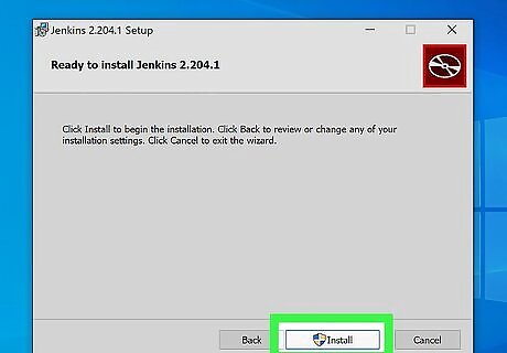 Click the Install button in the setup wizard. This button is in the lower-right corner of the setup wizard window. It will start your Jenkins installation. If you're prompted by your firewall, click Yes in the pop-up window to allow the installation. You can track the install status on a green progress bar.