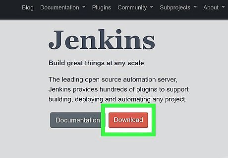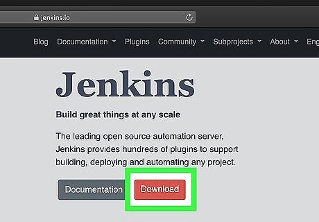 Click the Download button. This is a red button below the "Jenkins" heading. It will open a list of all the download versions in the bottom half of the page.