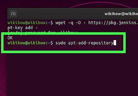 Type sudo apt-add-repository on a new Terminal line. This command will allow you to add the official Jenkins repository to your system.