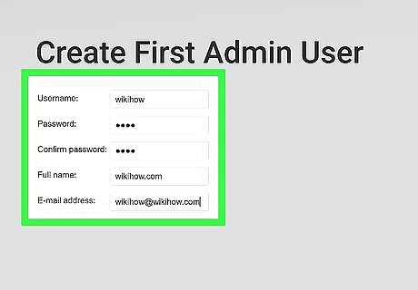Fill out the "Create First Admin User" form in your browser. You will need to create an admin username and password here, and enter your full name and email address.