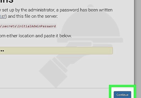 Click the Continue button. This is a blue button in the lower-right corner of the page. It will confirm your initial admin password, and allow you to finalize your Jenkins setup.