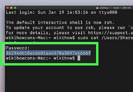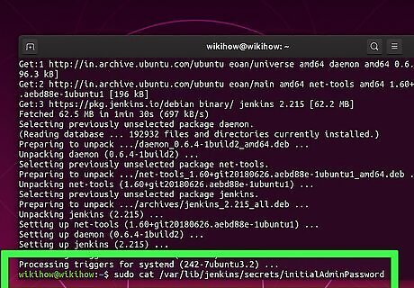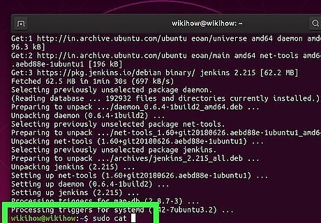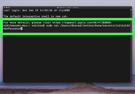 Add the copied directory at the end of the command. This command will read the file's contents, and show your password in the Terminal window. The full command should look something like sudo cat /var/lib/jenkins/secrets/initialAdminPassword.