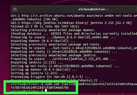 Copy the Jenkins password from Terminal. Select the password in the Terminal window, right-click, and click Copy. You can now paste the admin password on the "Unlock Jenkins" page in your browser, and finalize your installation. Make sure to check out Method 4 below to see how you can finalize your plugin installations.