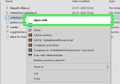 Right-click the initialAdminPassword file. This folder contains your admin password to finish your setup.