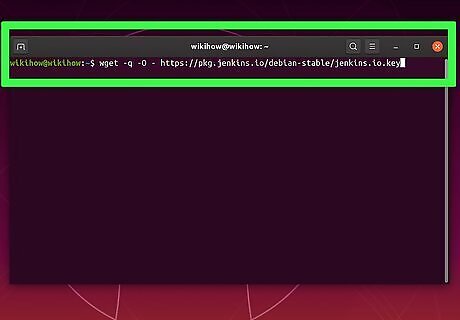 Add | sudo apt-key add - at the end of the command. This will complete your command line to add the repository key to your system. The full command should now look like wget -q -O - https://pkg.jenkins.io/debian/jenkins.io.key | sudo apt-key add -.