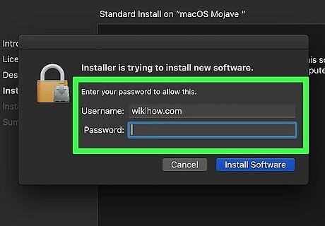 Enter your Mac's admin user name and password. This will allow you to start the installation.