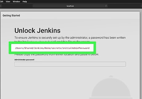 Go to http://localhost:8080 in your internet browser. Type or paste this link into your browser's address bar, and press ↵ Enter or ⏎ Return. This will open the "Unlock Jenkins" page in your browser.