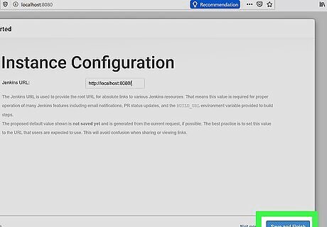 Click Save and Finish on the bottom-right. This is a blue button in the lower-right corner of the page. It will create your first admin user, and finish your Jenkins installation.