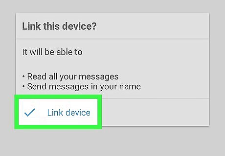 Scan the QR code on the computer screen with the mobile device. Once the code is read, you’ll see a message asking if you want to link the device.