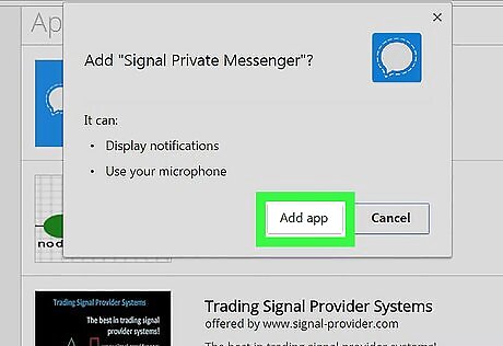 Click Add App. When the installation is complete, a pop-up will appear that says “Welcome to Signal Desktop.”