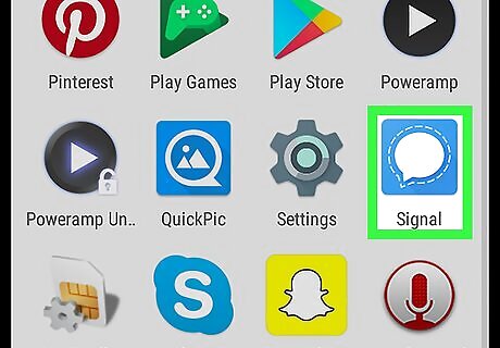 Open Signal on your mobile device. It’s a blue icon with a white chat bubble.