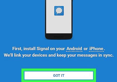 Click Get Started. You will now be prompted to install Signal on your Android or iPhone if you haven’t yet done so.