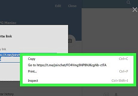 Right-click the invite link. This will open your right-click menu in a drop-down box.