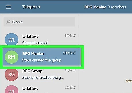 Click a group chat on the left panel. Find a group on your chats list on the left-hand side of your screen, and click it. This will open the conversation on the right-hand side.