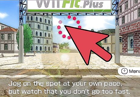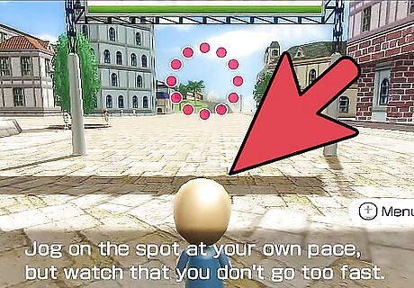 Jog! Don't go too fast: keep it nice and steady so your Mii doesn't fall. Stay right behind the runner in front of you. If you pass him, you will then follow the dog. Remember, it isn't about winning the race, it's about improving your health and having fun!