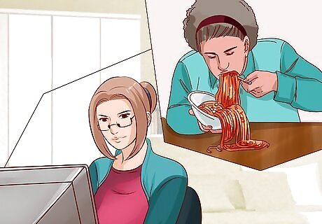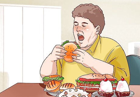 Search for behavioral symptoms. You need to assess the symptoms you are experiencing to see if they match up with those for compulsive eating. The behavioral components of overeating may include: Stockpiling and hiding food Eating normally around others and hiding to binge Eating quickly and without care for making a mess Unable to control how much you eat or the speed of eating Eating when you are full Eating throughout the day without planning meals